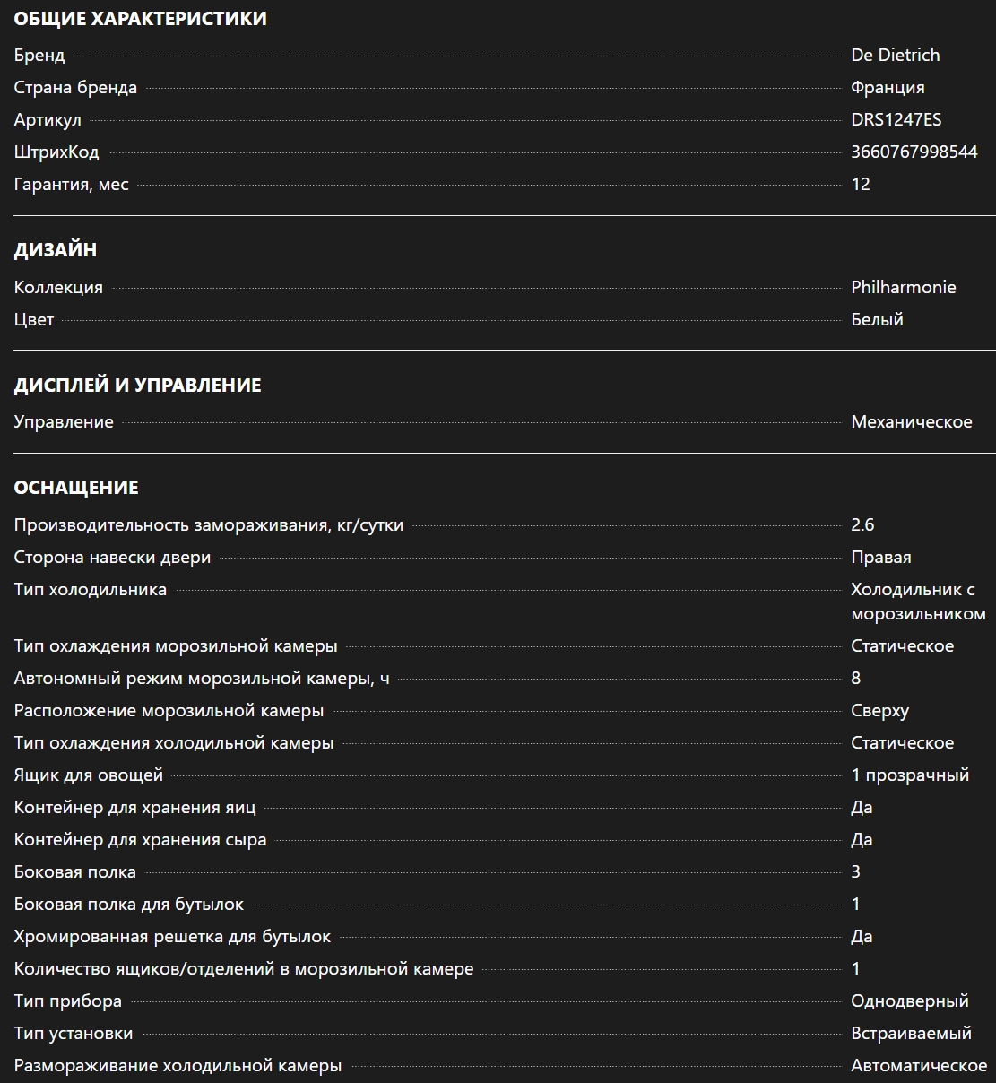 Встраиваемый холодильник De Dietrich (Де Дитрих) DRS1247ES