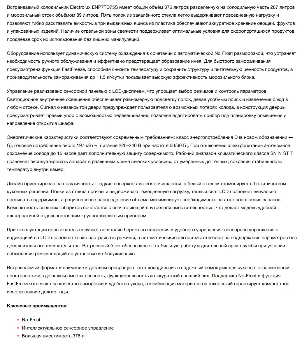 Встраиваемый холодильник Electrolux (Электролюкс) ENP7TD75S