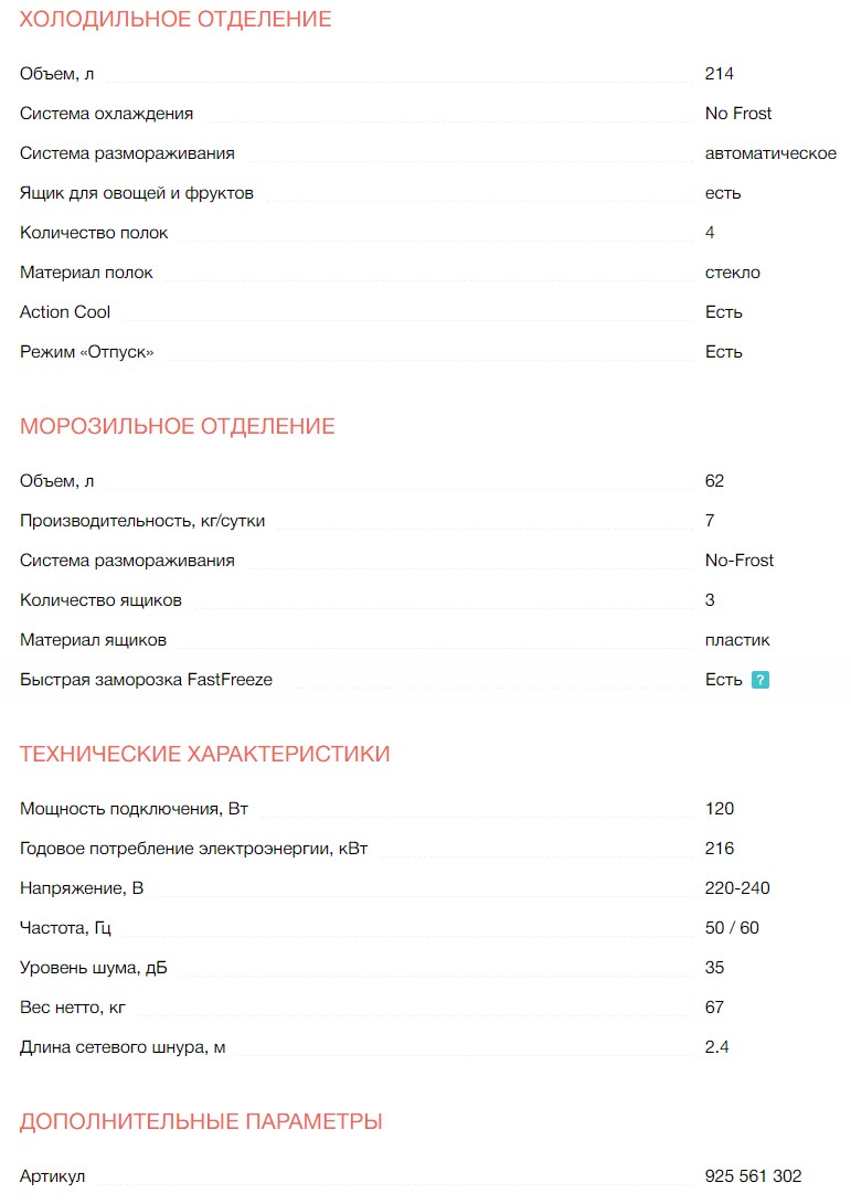 Объем холодильной камеры |