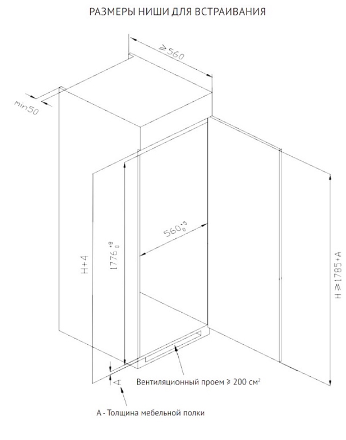 Размер ниши для встраивания (ВхШхГ) |