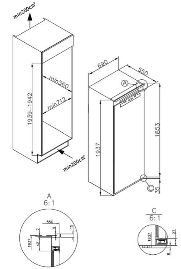 Встраиваемый холодильник Korting (Кёртинг) KSI 1947