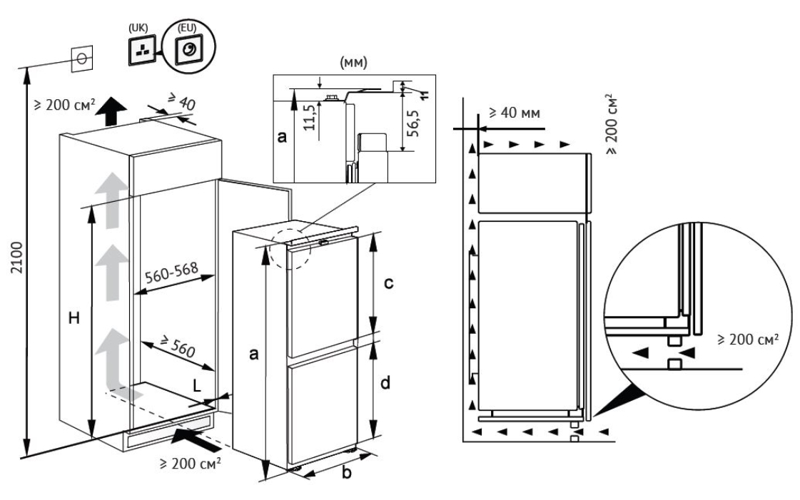 Расположение морозильной камеры |