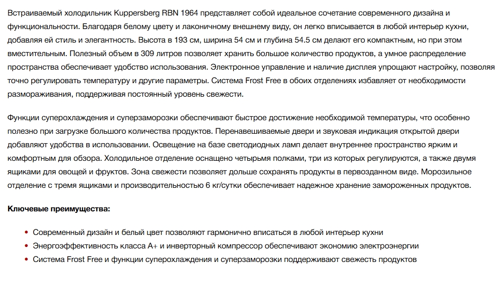 Встраиваемый холодильник Kuppersberg (Купперсберг) RBN 1964