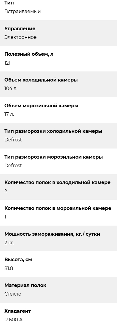 Встраиваемый холодильник Lex (Лекс) RBI 103 DF