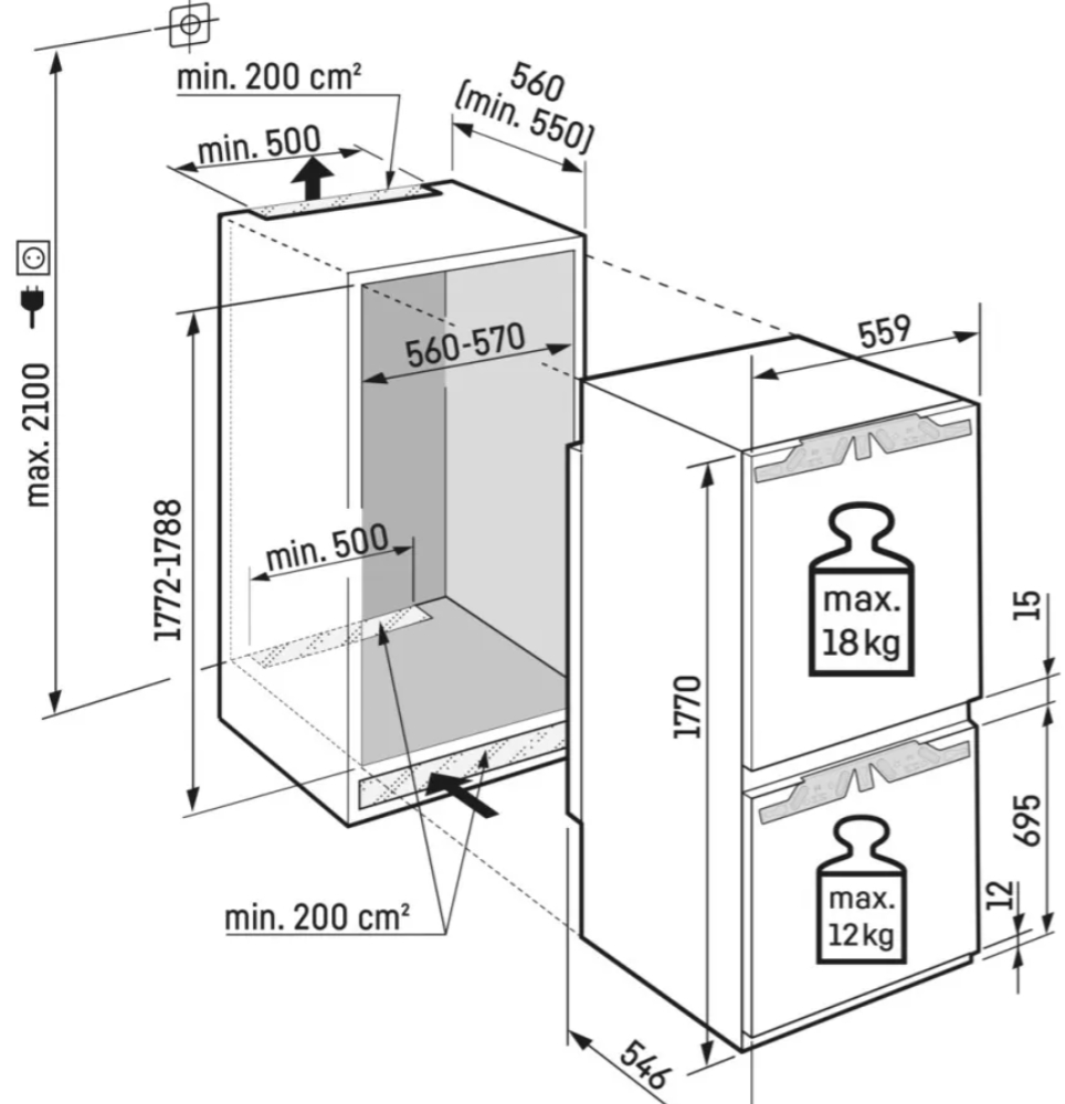 177 x 55,9 x 54,6 см |
