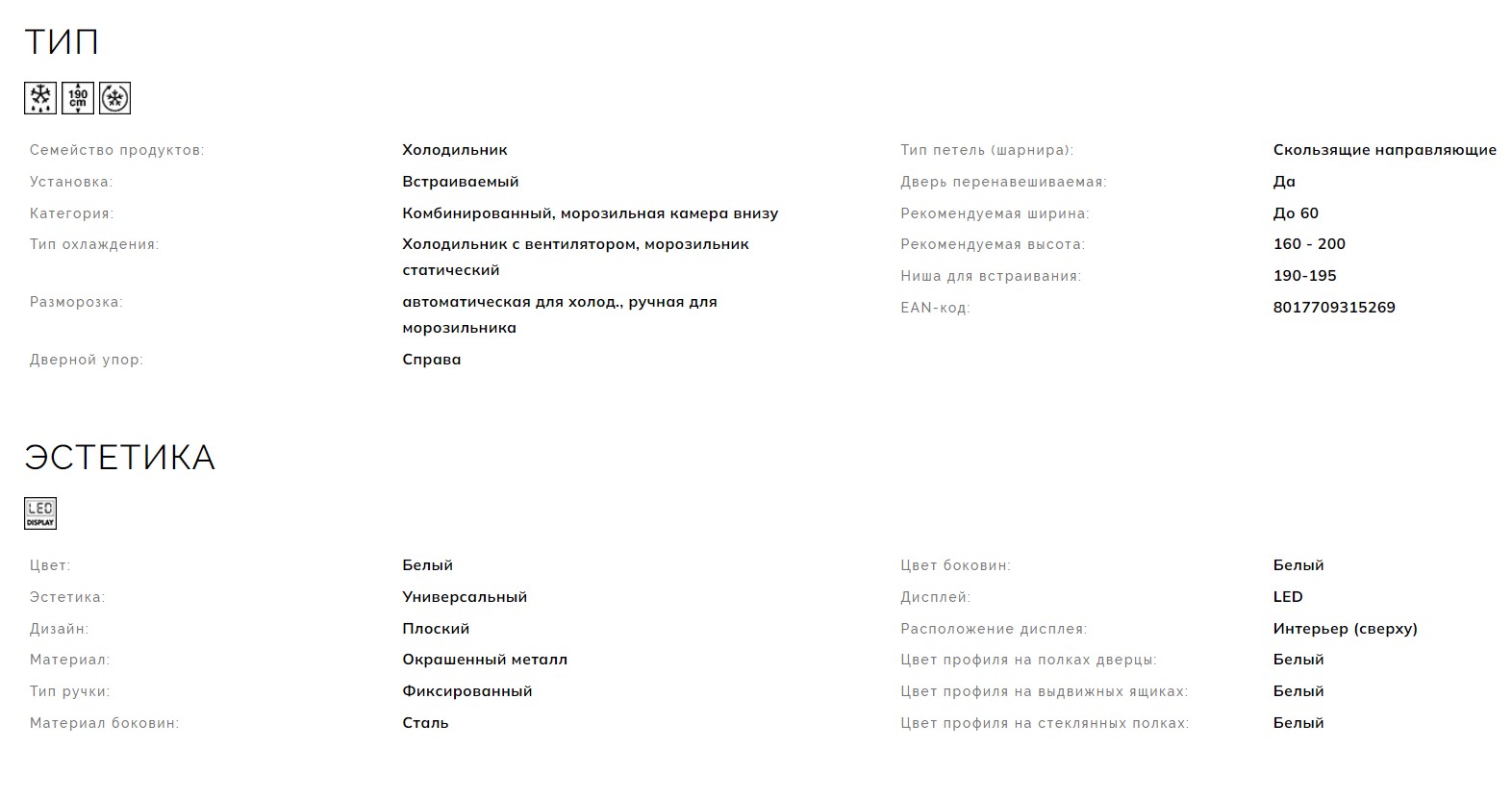 Расположение морозильной камеры |