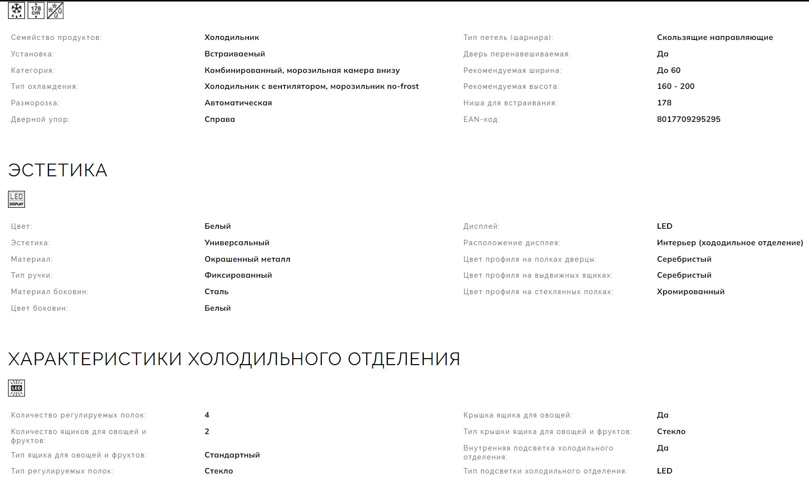 Встраиваемый холодильник Smeg (Смег) C8173N1F