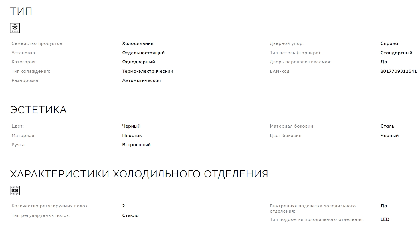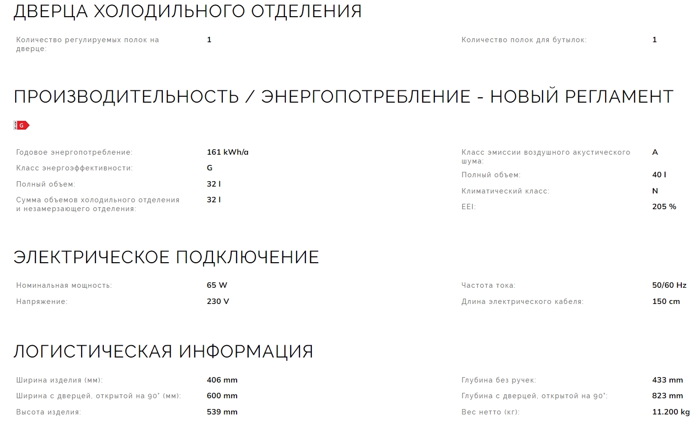 Объем холодильной камеры |
