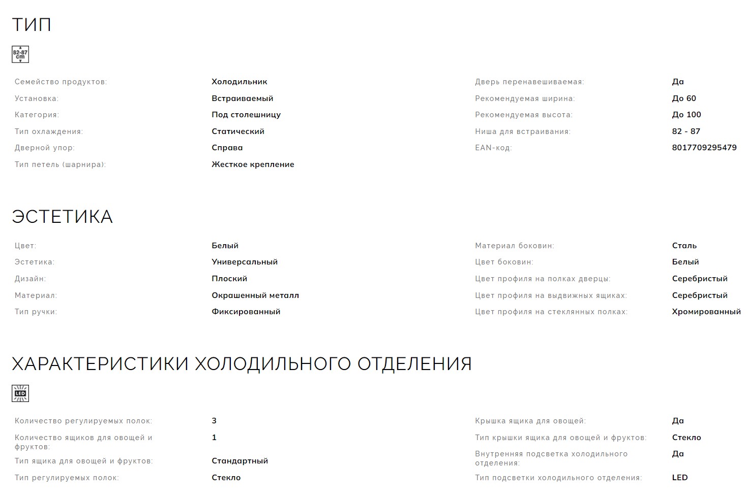 Встраиваемый холодильник Smeg (Смег) U8L080DF