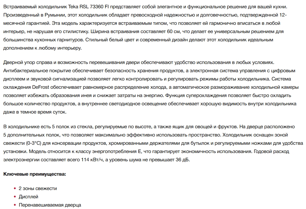 Встраиваемый холодильник Teka (Тека) RSL 73360 FI