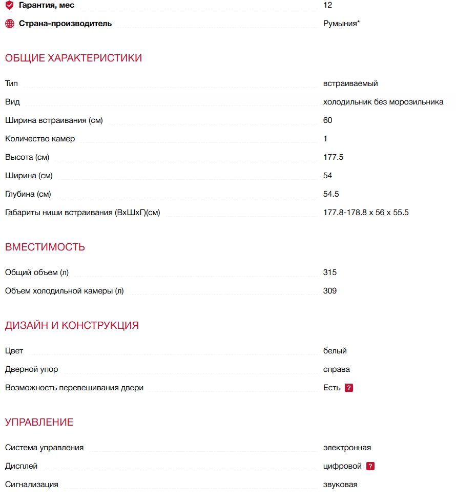Размер ниши для встраивания (ВхШхГ) |