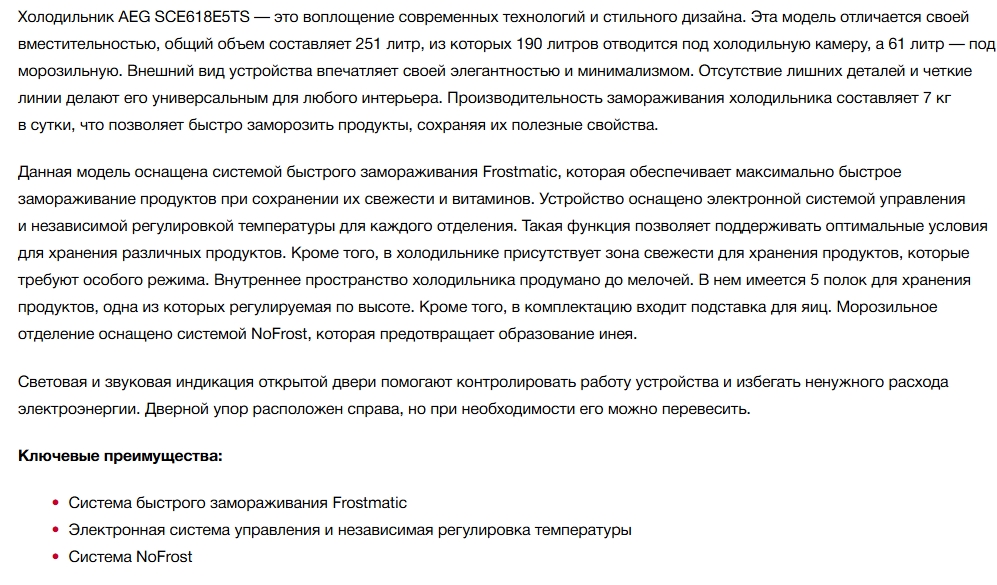 Встраиваемый холодильник AEG (АЕГ) SCE618E5TS