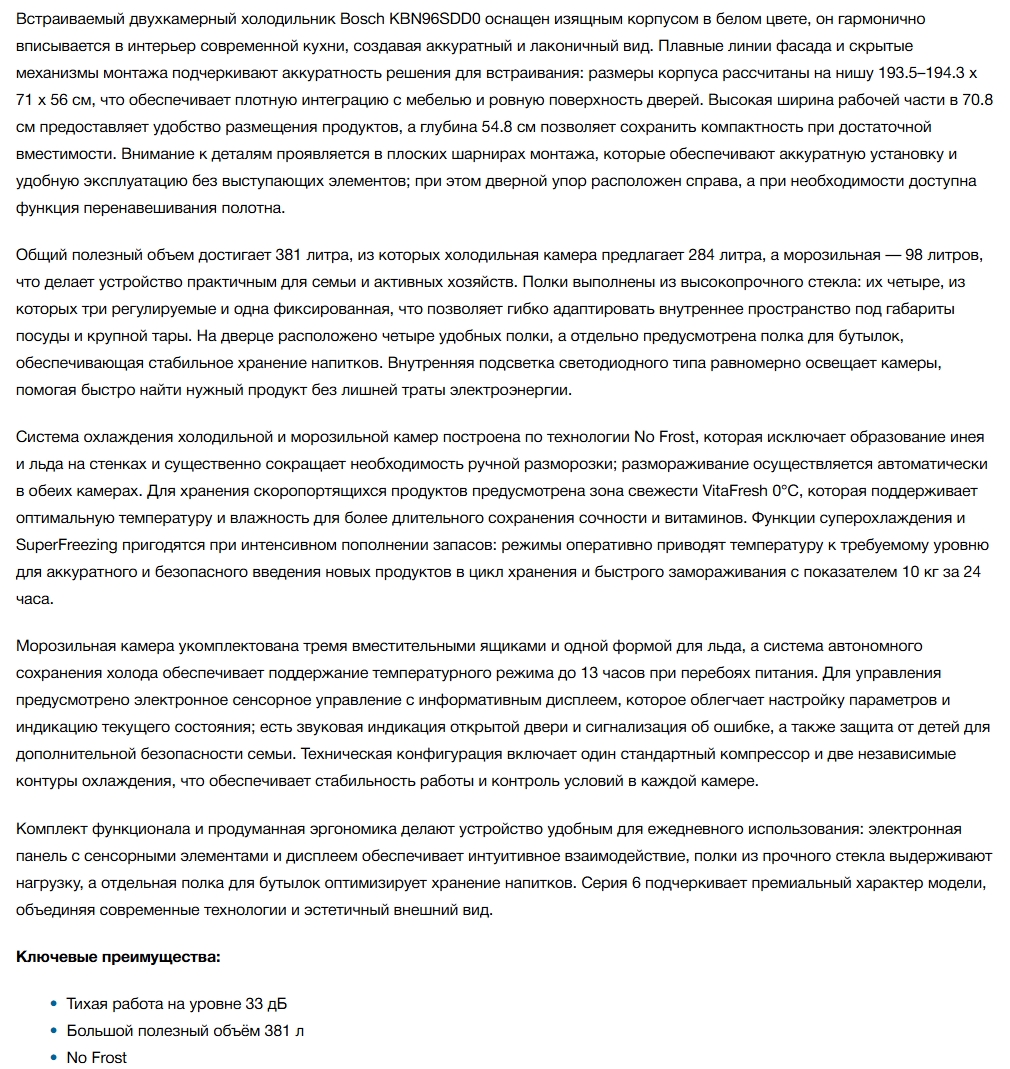 Встраиваемый холодильник Bosch (Бош) KBN96SDD0