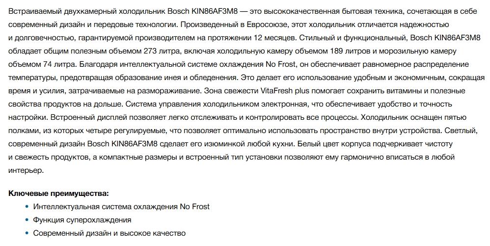 Встраиваемый холодильник Bosch (Бош) KIN86AF3M8