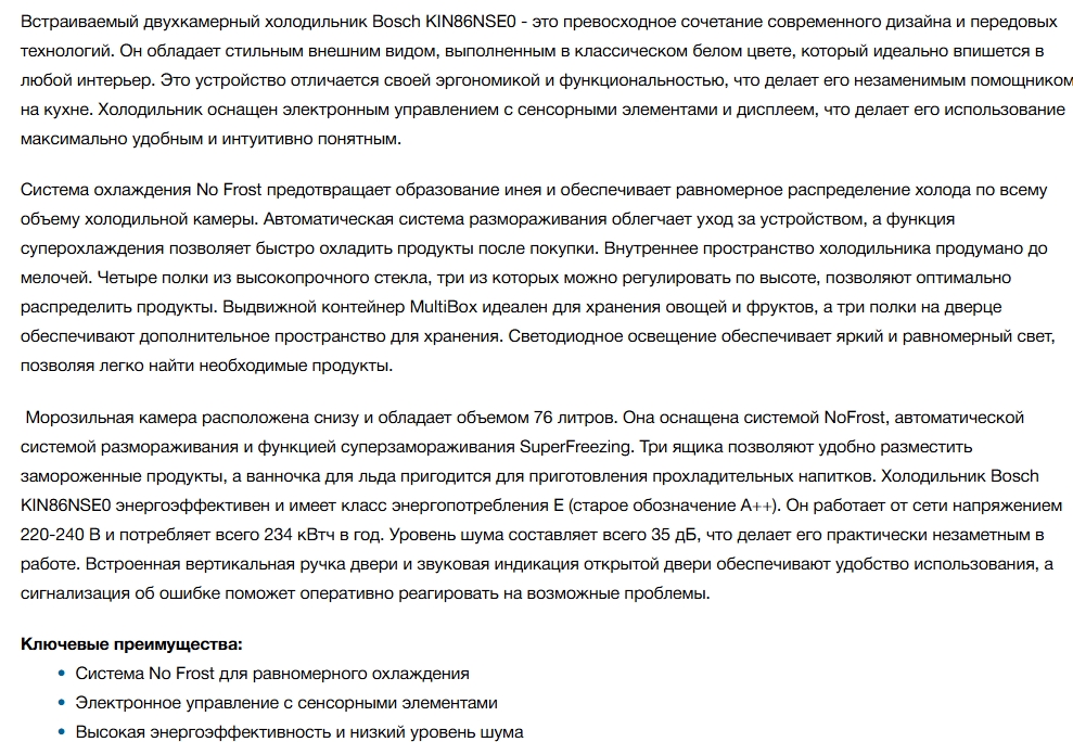 Встраиваемый холодильник Bosch (Бош) KIN86NSE0