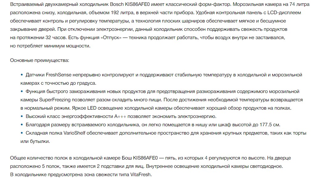 Встраиваемый холодильник Bosch (Бош) KIS86AFE0