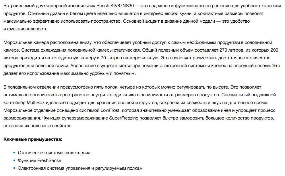 Встраиваемый холодильник Bosch (Бош) KIV87NS306