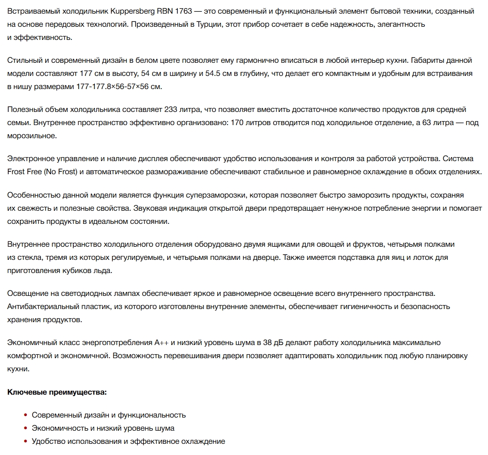 Встраиваемый холодильник Kuppersberg (Купперсберг) RBN 1763