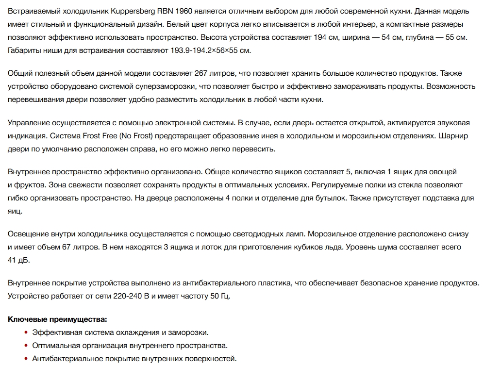 Встраиваемый холодильник Kuppersberg (Купперсберг) RBN 1960
