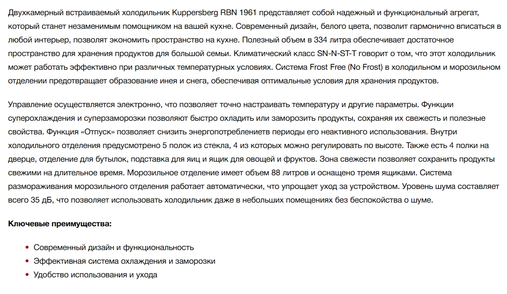 Встраиваемый холодильник Kuppersberg (Купперсберг) RBN 1961