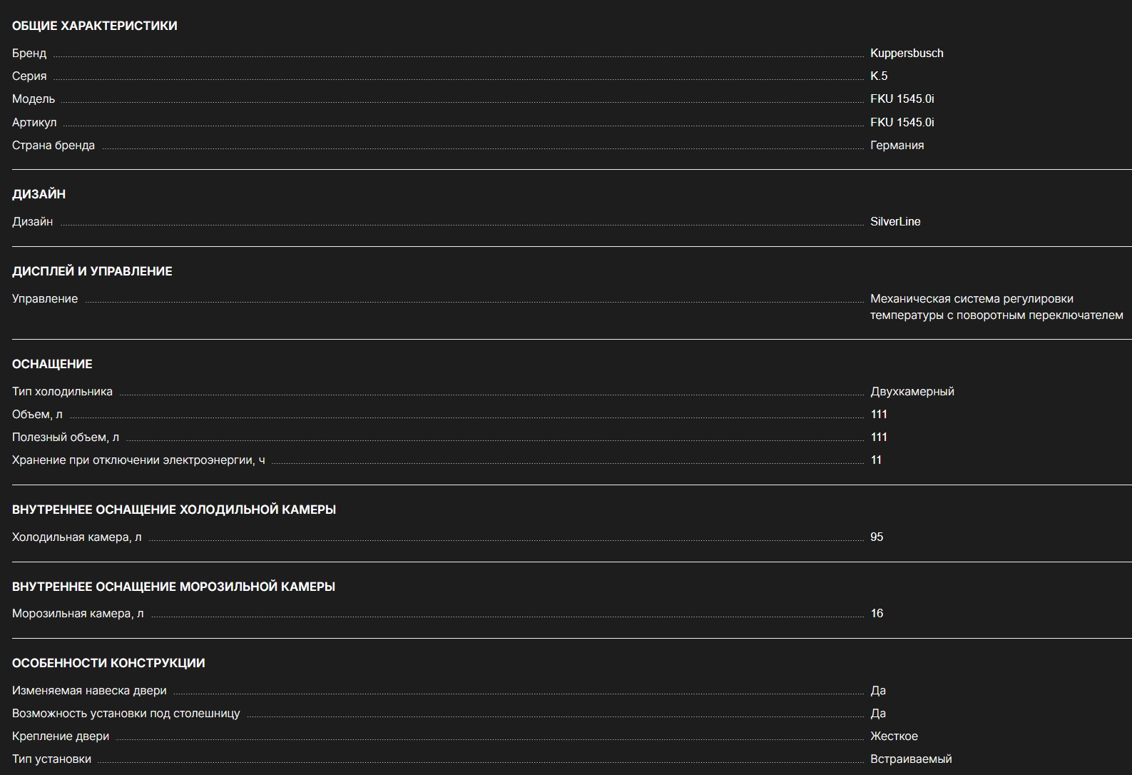 Встраиваемый холодильник Kuppersbusch (Купперсбуш) FKU 1545.0I