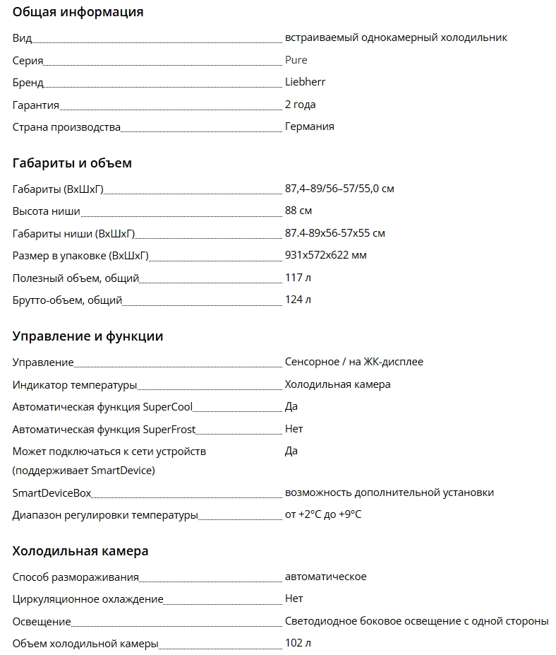 Встраиваемый холодильник Liebherr (Либхер) IRE 3901