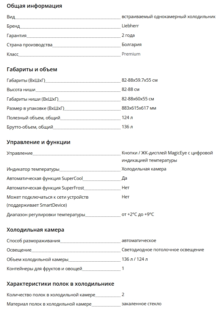 Встраиваемый холодильник Liebherr (Либхер) UIKo 1560