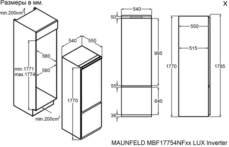 Встраиваемый холодильник MAUNFELD (Маунфилд) MBF17754NFWHGR LUX
