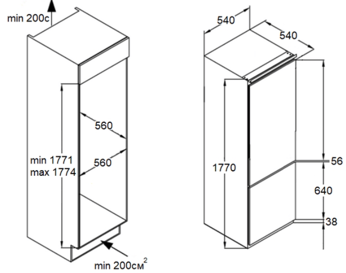 Расположение морозильной камеры |