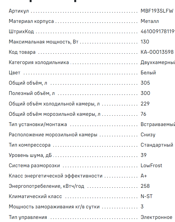 Встраиваемый холодильник MAUNFELD (Маунфилд) MBF193SLFW