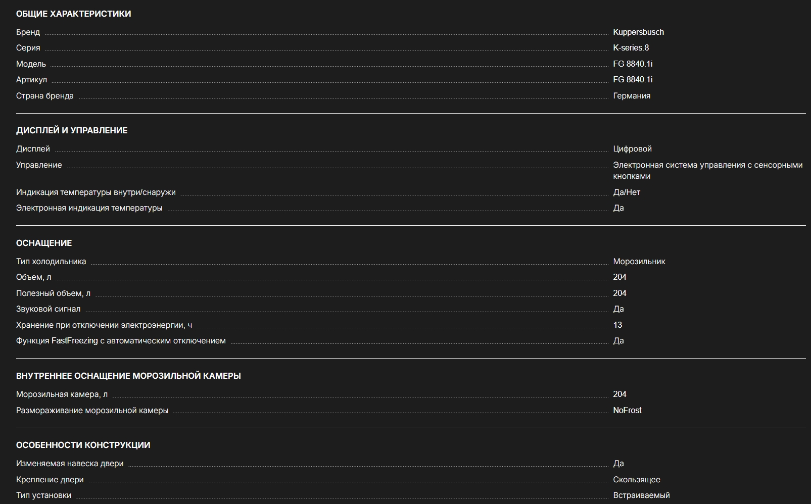 Встаиваемая морозильная камера Kuppersbusch (Купперсбуш) FG 8840.1i