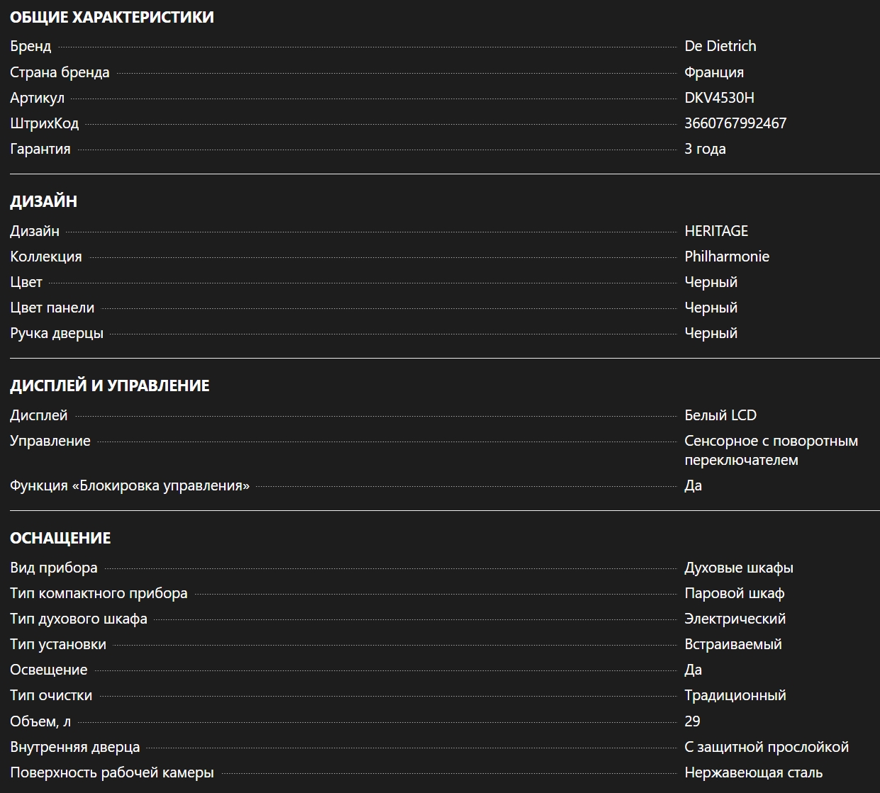 Встраиваемая пароварка De Dietrich (Де Дитрих) DKV4530H