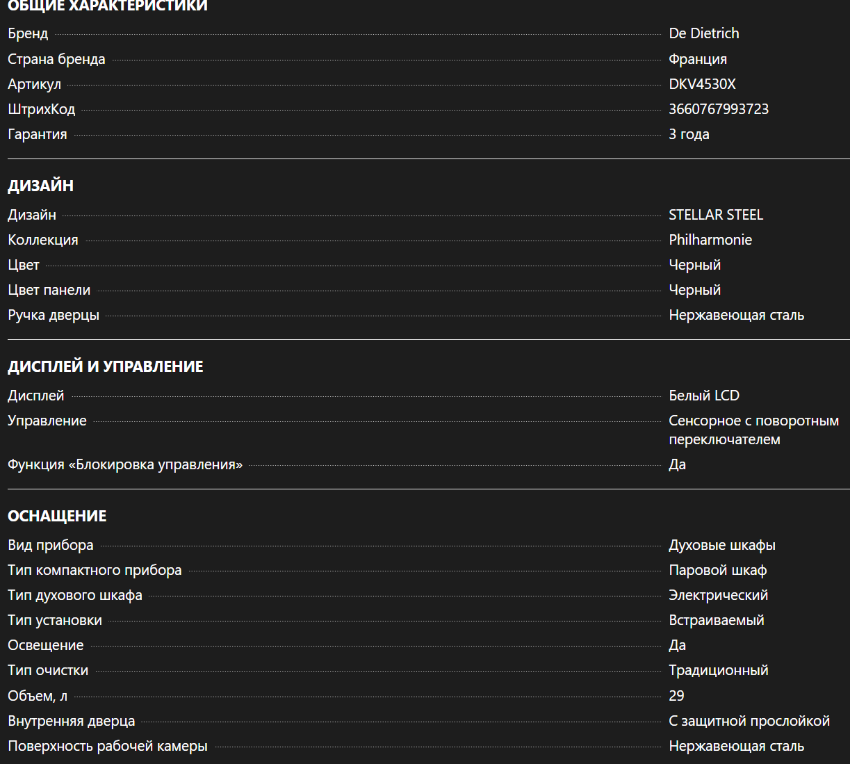 Встраиваемая пароварка De Dietrich (Де Дитрих) DKV4530X