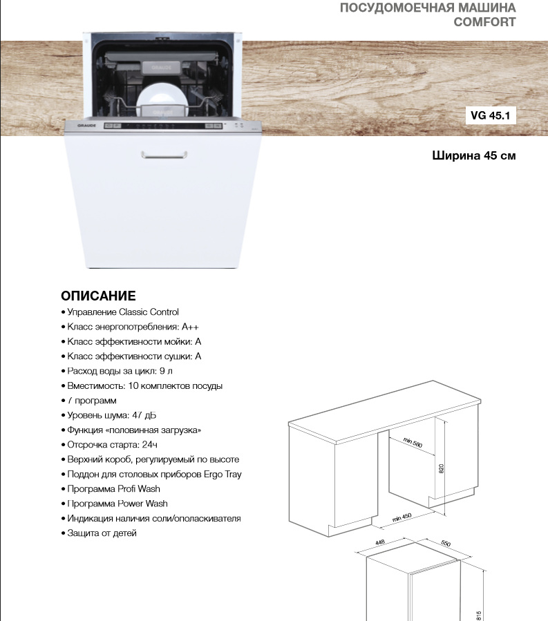 Встраиваемая посудомоечная машина GRAUDE (Грауде) VG 45.1