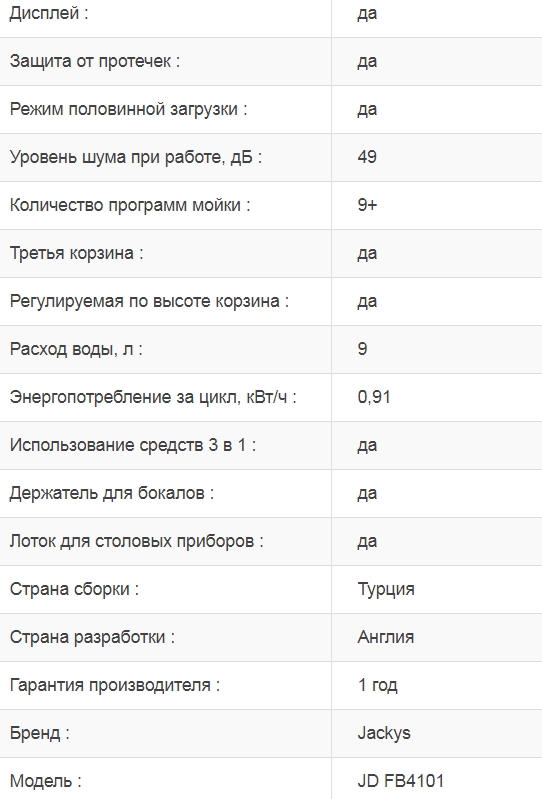 Встраиваемая посудомоечная машина Jacky's (Джекис) JD FB4101