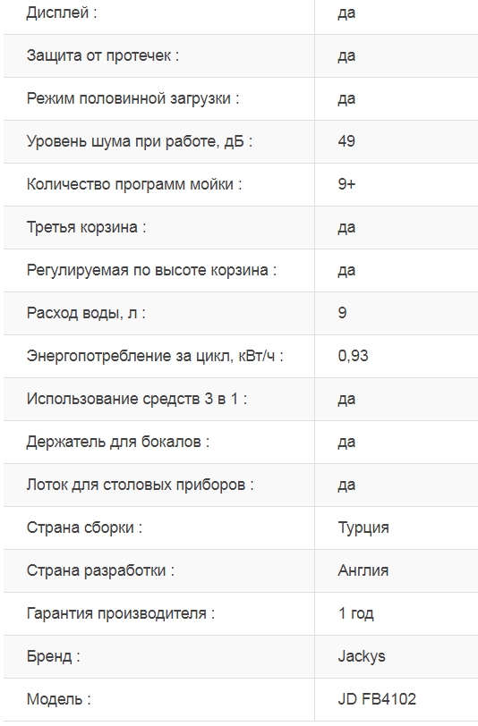 Встраиваемая посудомоечная машина Jacky's (Джекис) JD FB4102