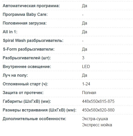 Количество программ мойки |