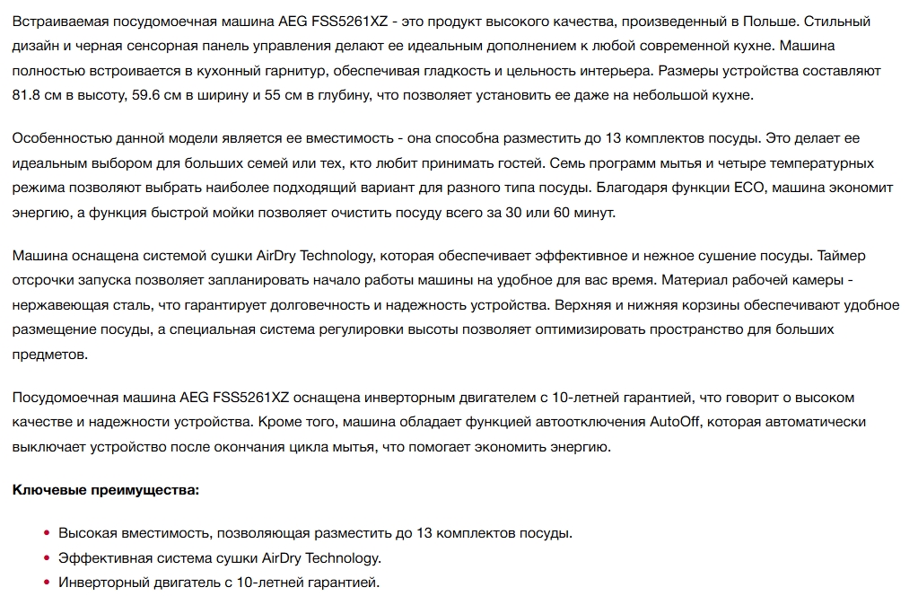 Встраиваемая посудомоечная машина AEG (АЕГ) FSS5261XZ