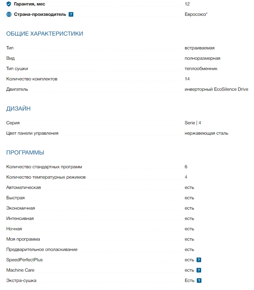 Количество программ мойки |