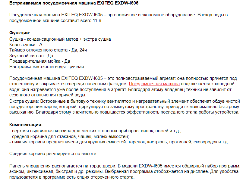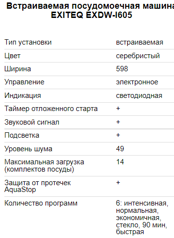 Встраиваемая посудомоечная машина EXITEQ (Экзитег) EXDW-I605
