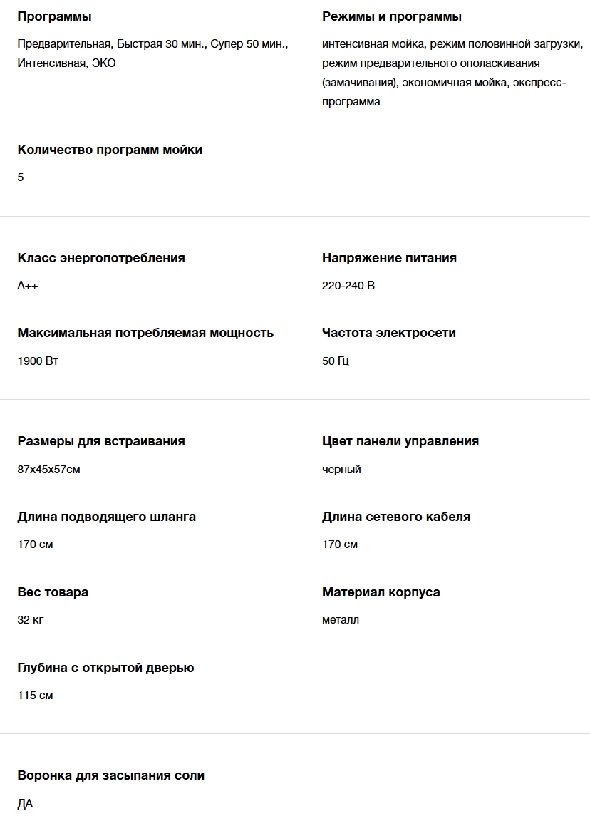 Количество программ мойки |