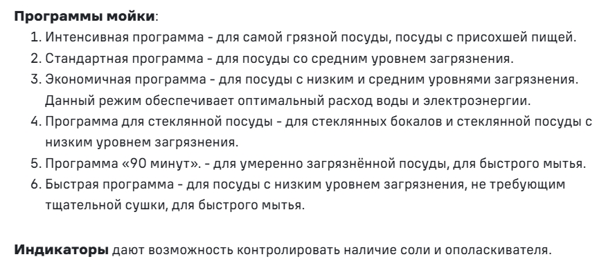 Количество программ мойки |