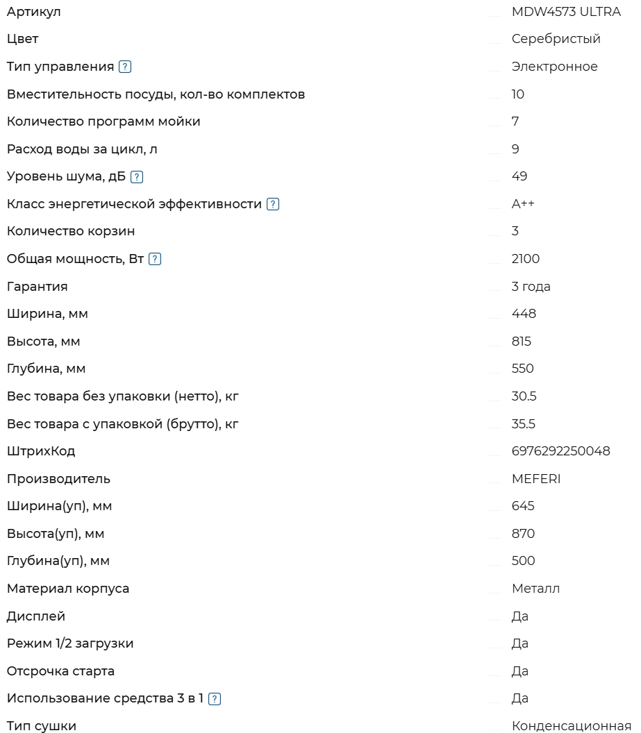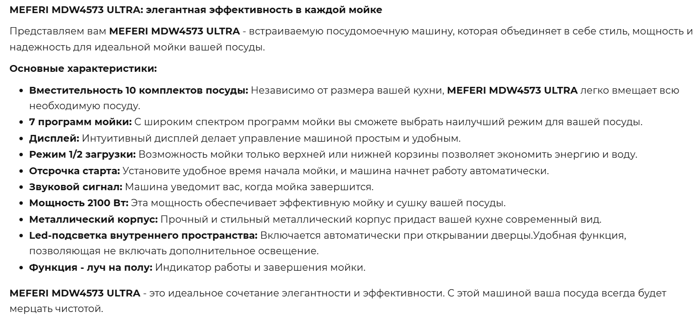 Встраиваемая посудомоечная машина Meferi (Мефери) MDW4573 ULTRA