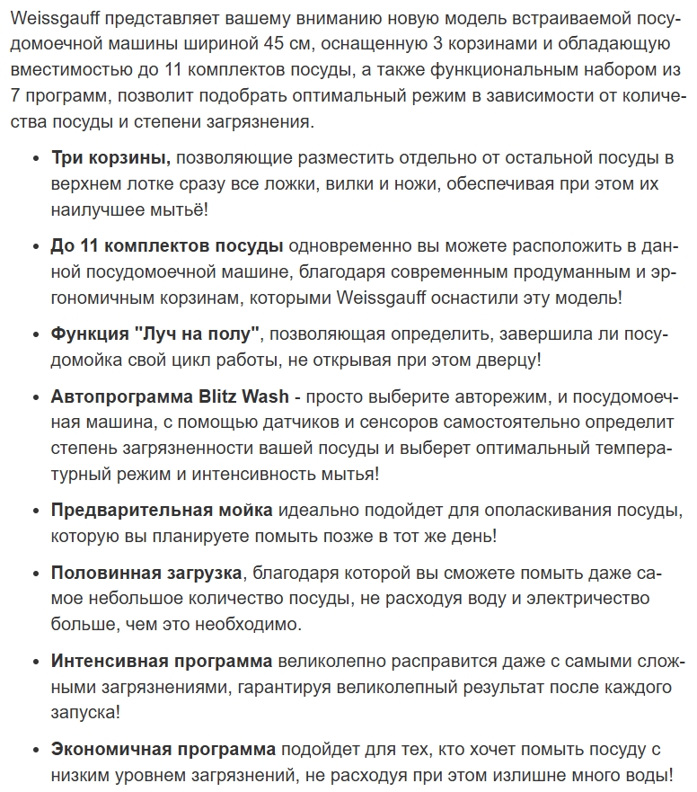 Встраиваемая посудомоечная машина Weissgauff (Вайсгауф) BDW 4537