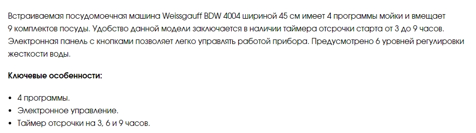 Встраиваемая посудомоечная машина Weissgauff (Вайсгауф) BDW 4004