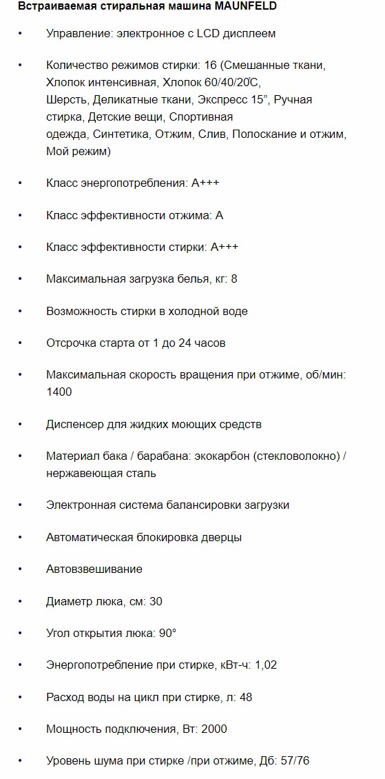 Встраиваемая стиральная машина MAUNFELD (Маунфилд) MBWM148S