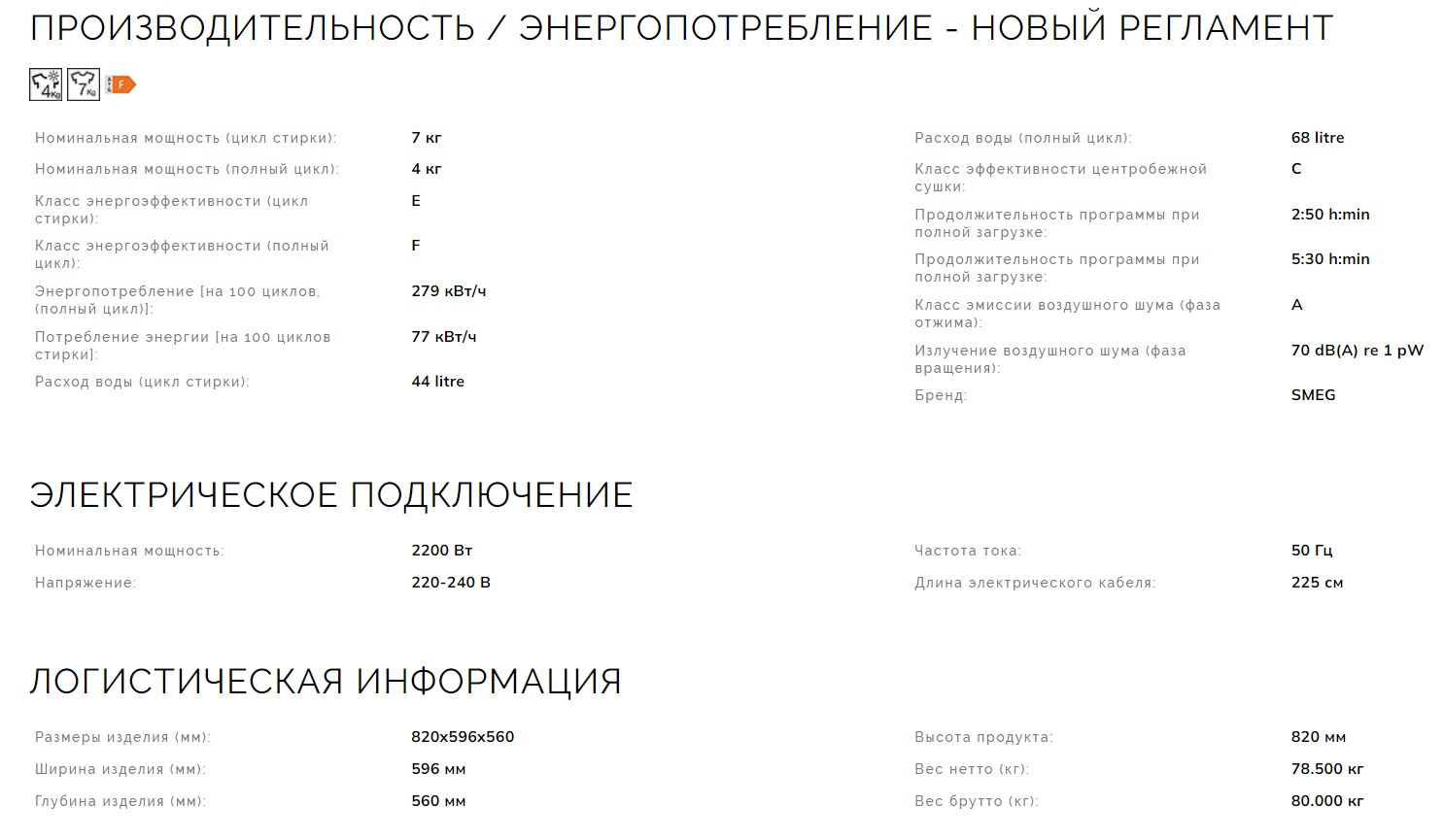 Встраиваемая стиральная машина Smeg (Смег) LSIA127