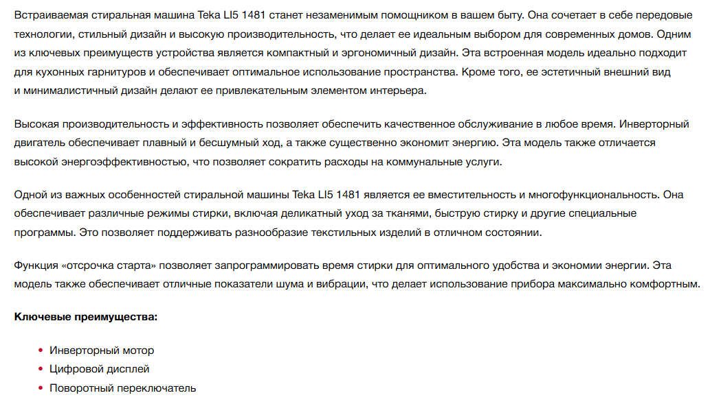 Встраиваемая стиральная машина Teka (Тека) LI5 1481