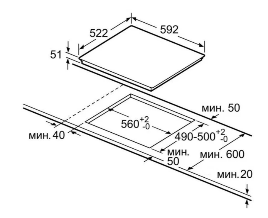 Глубина варочной поверхности |
