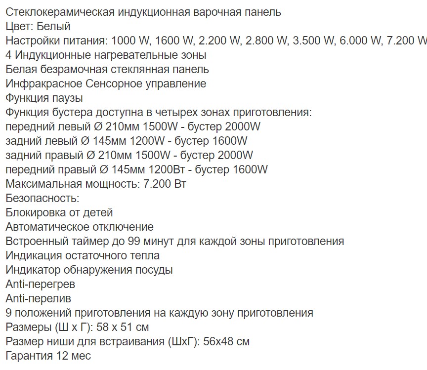 Конфорок индукционных |